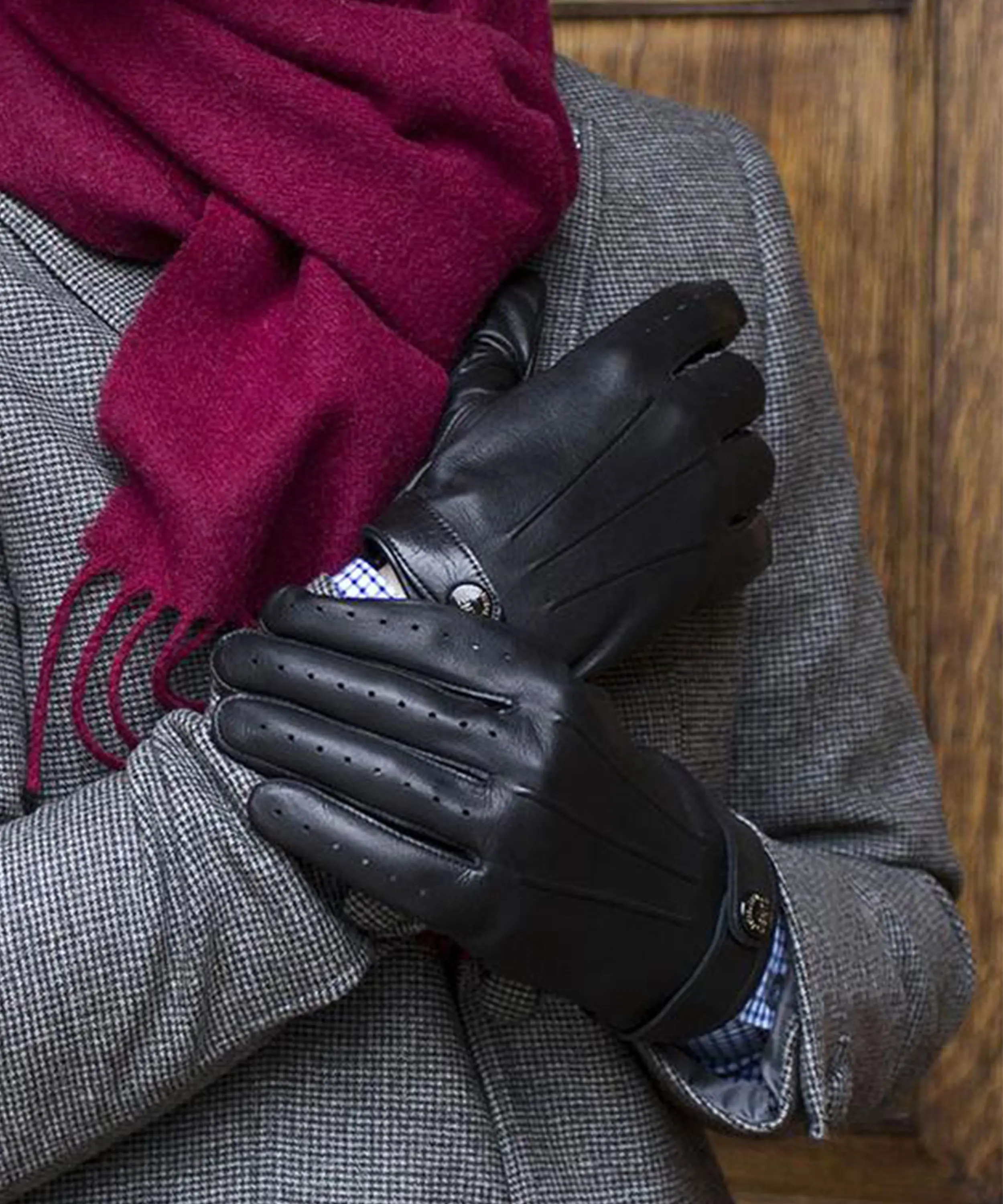 Unlined super soft hairsheep driving gloves with wriststrap. Worn by James Bond at the wheel of an Aston Martin DB5.